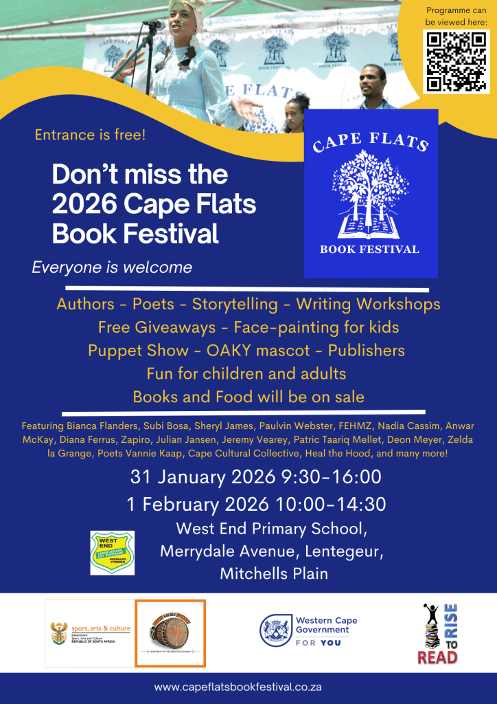 The Cape Flats Book Festival 2026 is just around the corner and it is the perfect start to the literary festival calendar of the new year. A few Karavan Press and Indeed Books authors feature on the wonderful programme that has something to offer for every literary desire. We can’t wait for these two days of bookish encounters. Please join us!