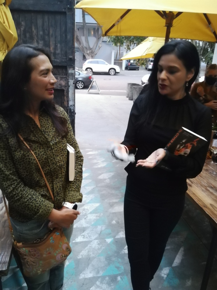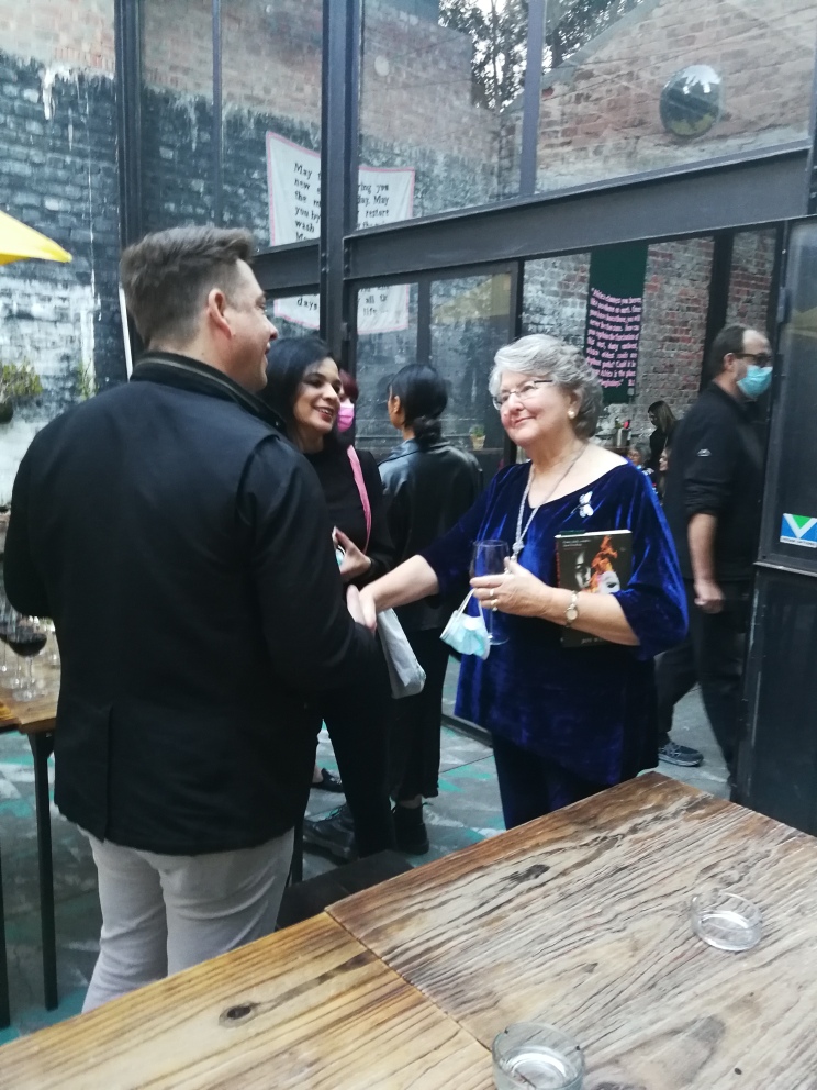 A special thank you to Karavan Press authors, Cathy Park Kelly and Melissa A. Volker, one of our fabulous designers, Monique Cleghorn, and Nazreen Essack, who took Joy’s author photograph, for attending. Monique designed The Other Me and Cathy’s memoir, Boiling a Frog Slowly.