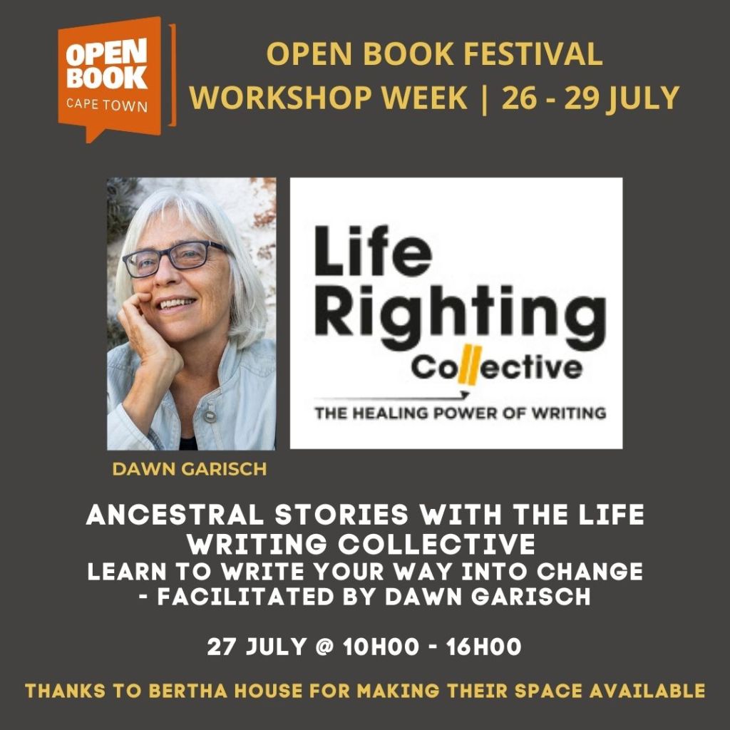 The Life Righting Collective has been running powerful workshops for a number of years and those who have attended any of them can attest to their ability to transform how one understands one’s own story. Dawn Garisch will facilitate two full day workshops on the 26th and 27th of July. Please note that these two workshops are not connected. If you would like to attend both, you will need to complete two bookings.