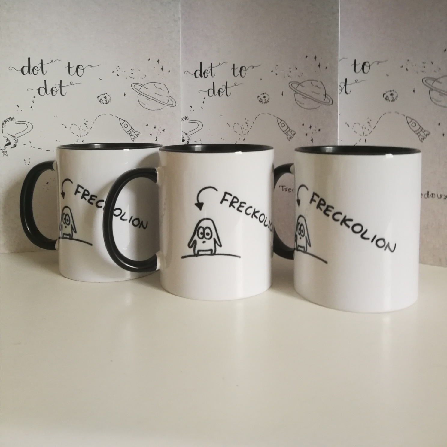 Join us for the event and stand a chance at going home with one of these Freckolion mugs!
