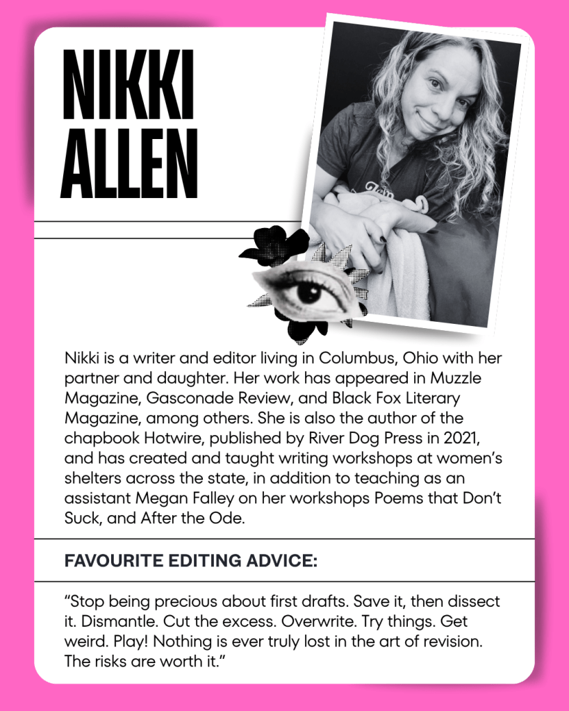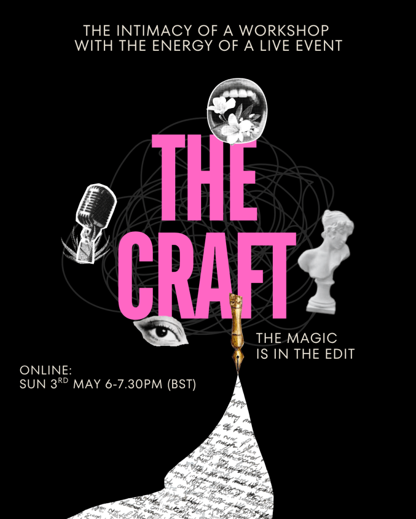 The Craft brings you the intimacy of a workshop with the energy of a live event. Hosted by four published poets with a wealth of experience in teaching and editing – Nikki Allen, Lexi Pelle, Carson Wolfe, and Melissa Sussens (author of Slaughterhouse, published by Karavan Press, and editor of our forthcoming poetry anthology).