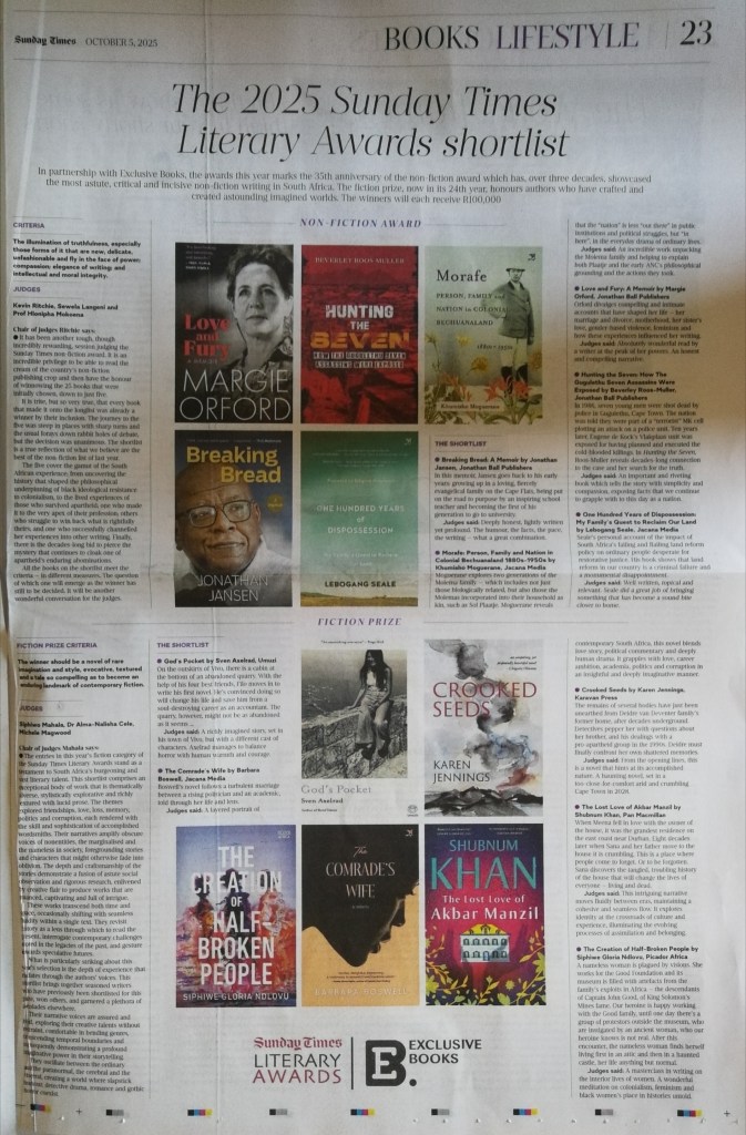 In Silence My Heart Speaks by Thobeka Yose, Good Hope by Nick Clelland and Who Looks Inside by Anna Stroud longlisted for the Sunday Times Literary Awards