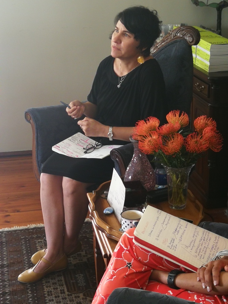 Earlier today, Kim was in discussion about Panya Routes with Joy Watson – both belong to the Rosebank Writes group, recently founded by Kim and other writers who live and work in and/or are affiliated with the suburb of Rosebank, Cape Town (we have a sister organisation in Johannesburg). The event was hosted by another member, Shireen Mall, in her beautiful lounge that was transformed into an independent art space for the day. Writers, readers and creatives gathered to celebrate the publication of Panya Routes (which Karavan Press and Protea Distribution have the honour of distributing in South Africa along independent panya routes of their own) and listen to Kim and Joy discuss the book, its origins and consequences.