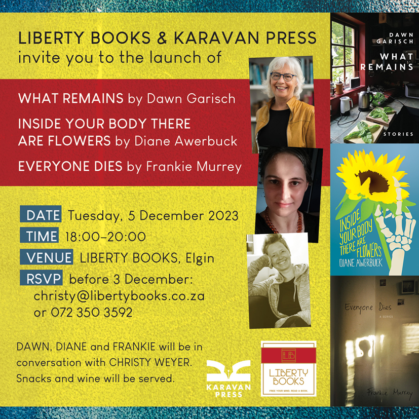 If you have not ever bought a short story collection, or have bought just a few, do yourself this favour and buy Inside your body there are flowers. And after you have finished this gorgeous outing spare a moment of gratitude for those publishers who bet the commercially impossible odds on books like these, simply just because it strikes them as the right thing to do (Karina Szczurek at Karavan Press in this case, others mentioned in Awerbuck’s acknowledgments).