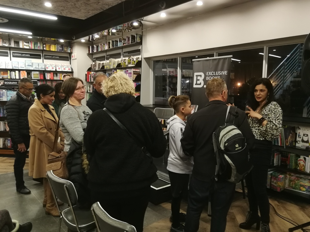 Joy’s comment on the event: “Last night’s book event at Exclusive Books was small and intimate. It was truly special – filled with all the ‘feels’. I laughed hard – John Maytham is incredibly conducive to raucous laughter. And I cried when Caroline Peters, for whom I have tremendous respect, got up to talk about my feminism and how, many years ago, in lieu of wedding gifts, I asked people to donate to the cause of violence against women. John was incredible as a discussant – bringing to the fore the most pertinent issues in my book. My heart is so full – my support crew was there and long-standing friends turned up to show love and support. I walked from that event feeling so blessed.”