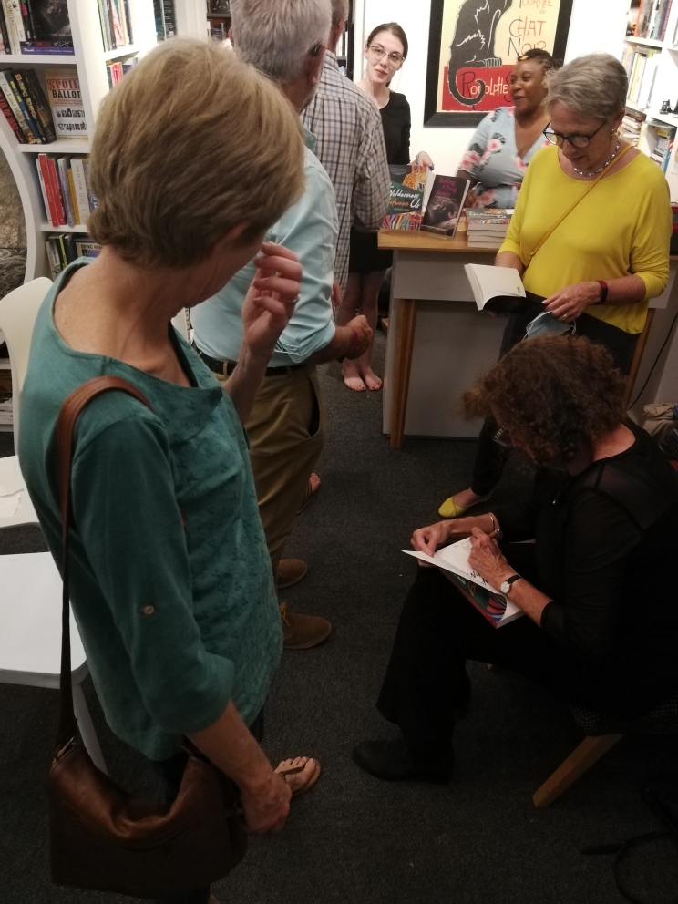 Nothing – not headwinds delaying flights, nor loadshedding threatening with darkness – could distract from the welcoming, warm atmosphere of the launch of Michael Boyd’s Cape Town launch of The Weight of Shade at Exclusive Books Cavendish. Readers, family and friends arrived to celebrate this mysterious, beautiful debut novel. Michael was in conversation with Penny Haw.