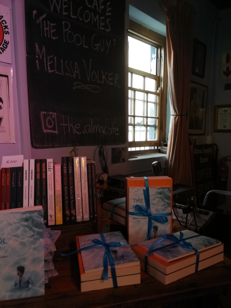 Earlier tonight, surfers, romance enthusiasts, readers and writers gathered at The Alma Café to celebrate the launch of Melissa A. Volker’s novelette, The Pool Guy – “the holiday you need”, in the words of Qarnita Loxton. Melissa was in conversation with the wonderful book reviewer, Sammi Malunga.